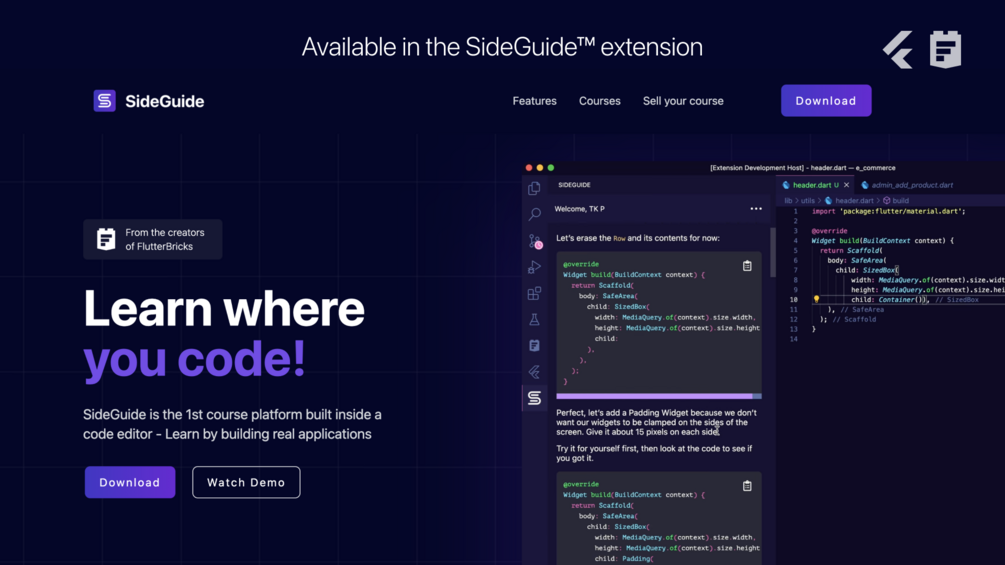 Get access to the 1st ever Flutter course inside a VS Code extension
